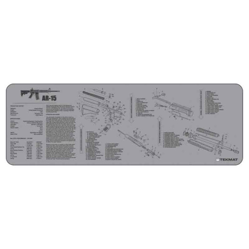 Made by the reputable manufacturer TekMat, known for their innovative and reliable gun care products, this bench mat features a sleek and stylish grey design with the AR-15 schematic printed on the surface for easy reference. The mat is made from a soft and absorbent material that will protect your firearm from scratches, while also absorbing any cleaning solvents or oils that may spill during use.