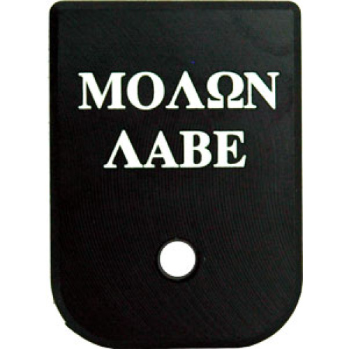 Upgrade your Glock magazine with this durable base plate featuring the Molon Labe engraving. Compatible with most Glock models.