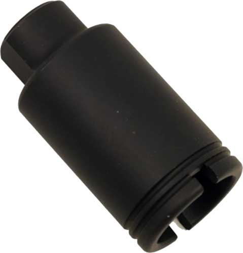 Reduce muzzle flash and redirect noise with this slim, black flash can for your AR15.